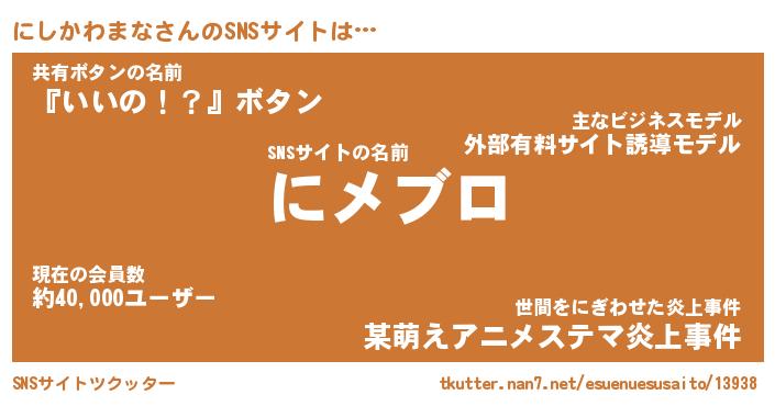 | ファンタジー風あだ名 | 『ニシフェル』『ファントムニシス』 |