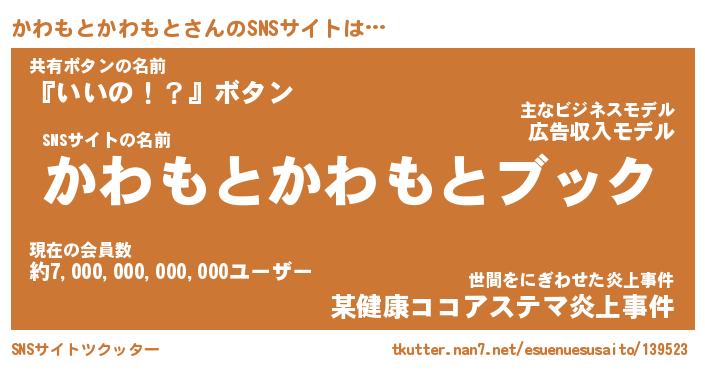| 胡散臭い通販商品みたいなあだ名 | 『億万長者になれるブレスレット…その名も「かわもとかわもと」』 |