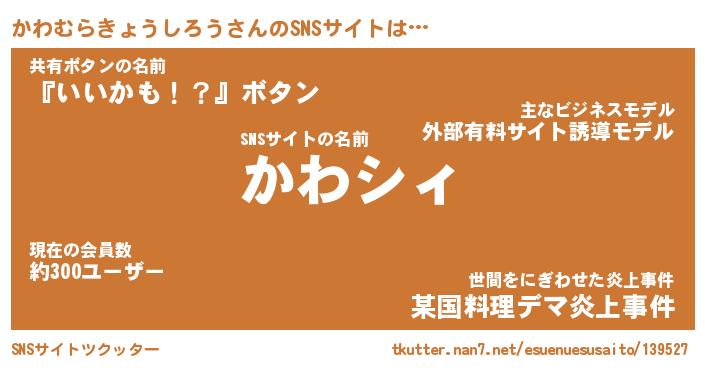 | 肩書あだ名 | 『かわむらきょうしろう社長』 |
