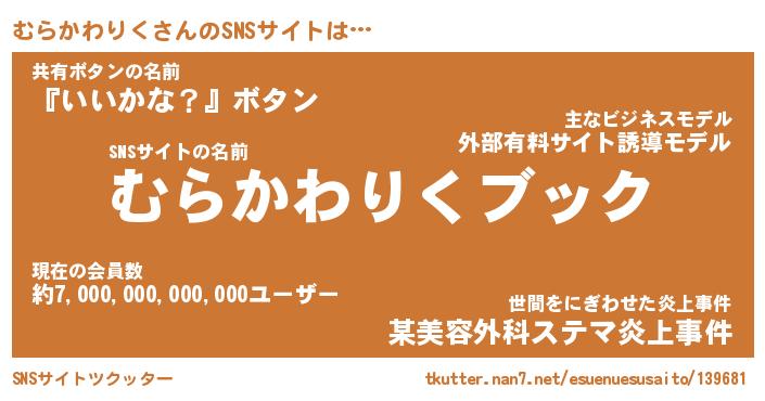 | 胡散臭い通販商品みたいなあだ名 | 『億万長者になれるブレスレット…その名も「むらかわりく」』 |