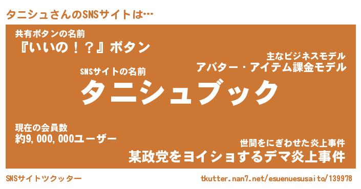 | 肩書あだ名 | 『タニシュ店長』『タニシュ国家主席』 |