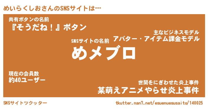 | 男性向けラノベタイトル風あだ名 | 『メイラクシオアートオンライン』 |