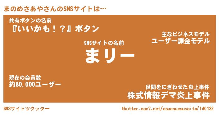 | ツイッター | まのめさあやさんのツイッターID『masyumaro_man』 |