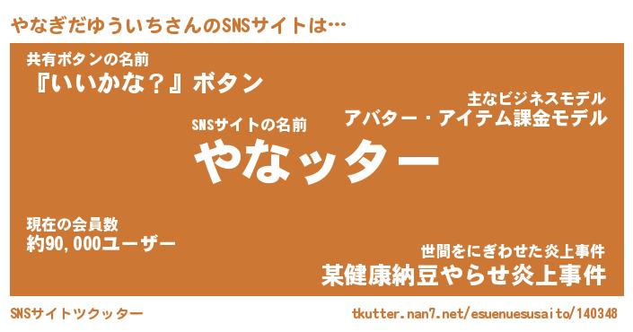 | 肩書あだ名 | 『やなぎだゆういち御曹司』 |