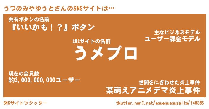 | 肩書あだ名 | 『うつのみやゆうと社長』 |