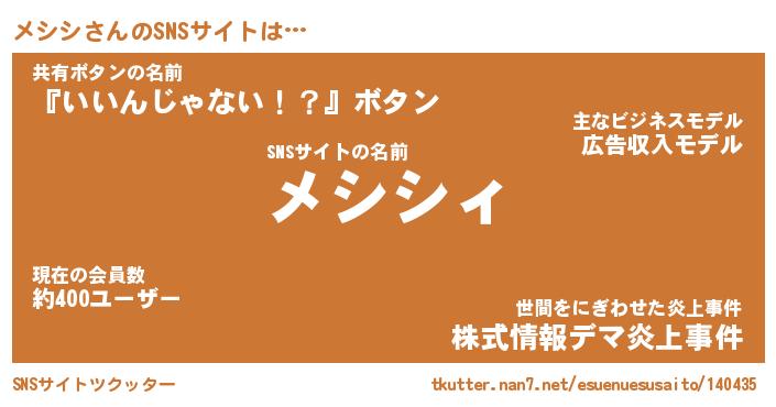 | 肩書あだ名 | 『メシシCEO』『メシシ総理大臣』 |