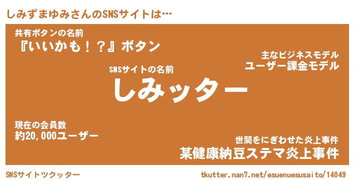 | 肩書あだ名 | 『しみずまゆみCEO』『しみずまゆみ大統領』 |