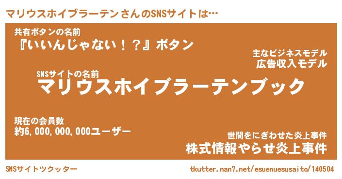 | ツイッター | マリウスホイブラーテンさんのツイッターID『namakemono_kun』 |