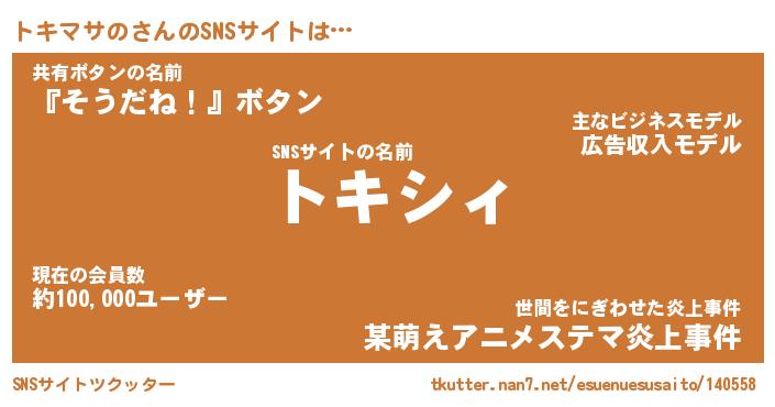 | 男性向けラノベタイトル風あだ名 | 『トキマサのの憂鬱』 |