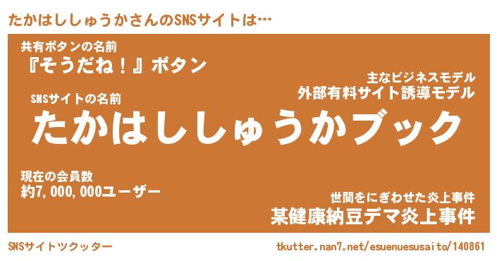 | 欧米人風あだ名 | 『マイケルたかはししゅうか』 |