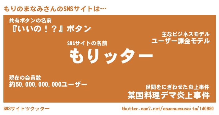 | ヘコむあだ名 | 『もりにー』『牛乳』『もりぷりん』 |