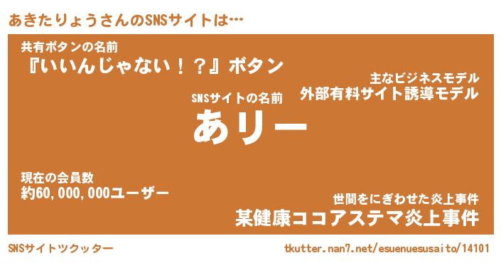 | 肩書あだ名 | 『あきたりょうCEO』『あきたりょう大統領』 |