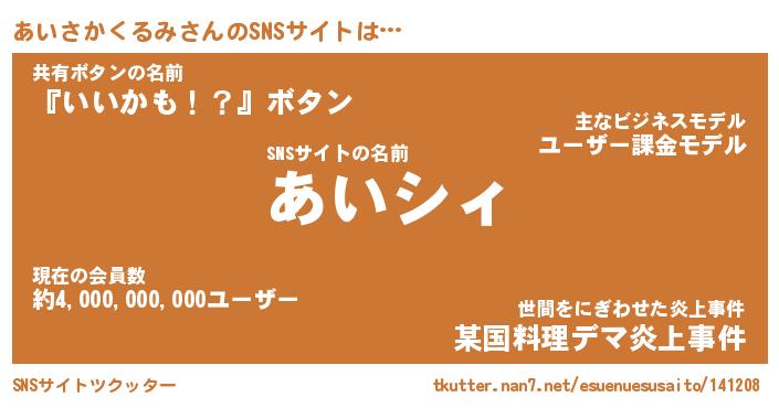 | 胡散臭い通販商品みたいなあだ名 | 『必ず成功するブレスレット…その名も「あいさかくるみ」』 |