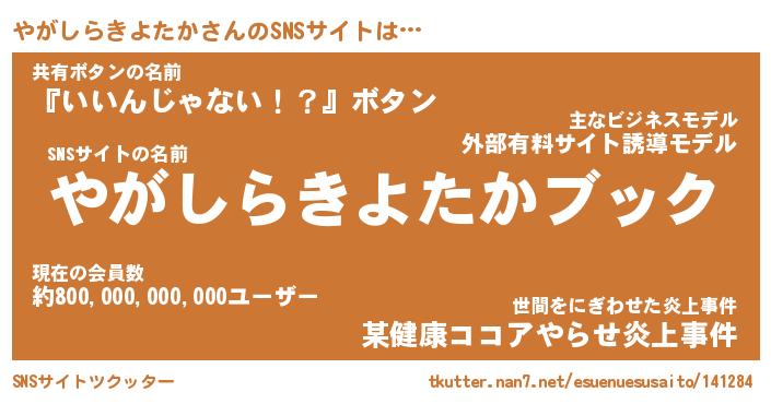 | 胡散臭い通販商品みたいなあだ名 | 『億万長者になれる水晶球…その名も「やがしらきよたか」』 |
