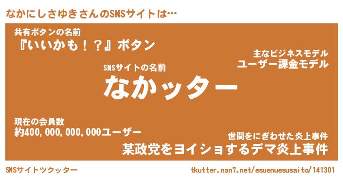 | 男性向けラノベタイトル風あだ名 | 『ナカニシサユキアートオンライン』 |