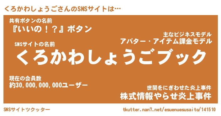 | 胡散臭い通販商品みたいなあだ名 | 『億万長者になれるブレスレット…その名も「くろかわしょうご」』 |