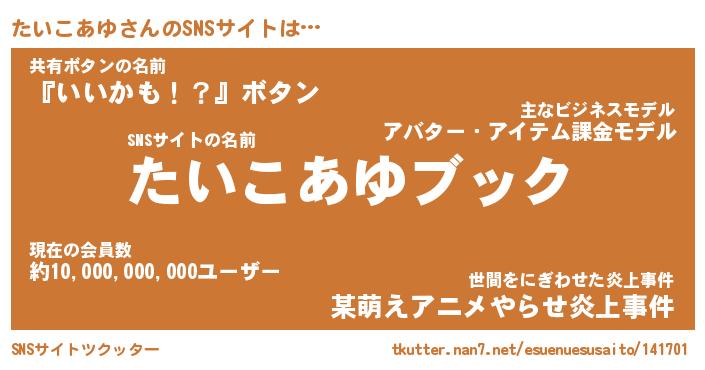 | 男性向けラノベタイトル風あだ名 | 『タイコアユアートオンライン』 |