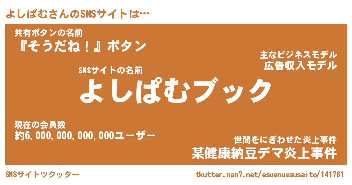 | 意味不明あだ名 | 『ペロリンよしぱむ』『永久保存よしぱむ』 |