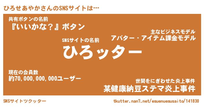 | 男性向けラノベタイトル風あだ名 | 『ヒロセアヤカアートオンライン』 |