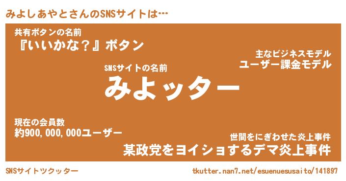 | ヒーロー風カッコイイあだ名 | 『スーパーミヨシアヤト』『暗黒騎士ミヨ』 |