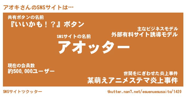 | 男性向けラノベタイトル風あだ名 | 『アオキアートオンライン』 |