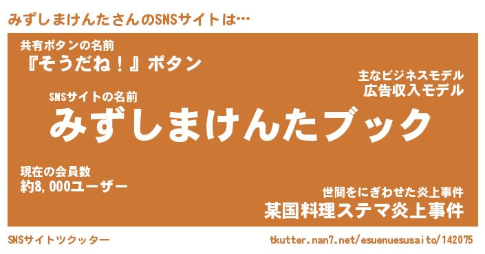 | 男性向けラノベタイトル風あだ名 | 『ミズシマケンタアートオンライン』 |