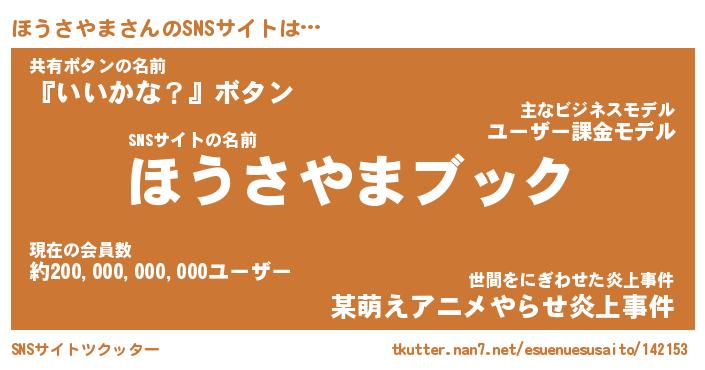 | ツイッター | ほうさやまさんのツイッターID『namakemono_idle』 |