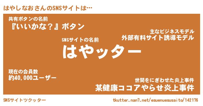| 男性向けラノベタイトル風あだ名 | 『ハヤシナオアートオンライン』 |