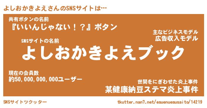 | 肩書あだ名 | 『よしおかきよえ社長』 |