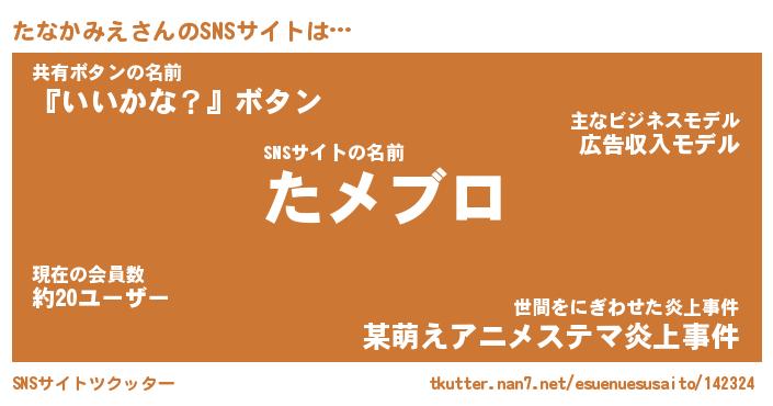 | 肩書あだ名 | 『たなかみえ社長』『たなかみえ国家主席』 |
