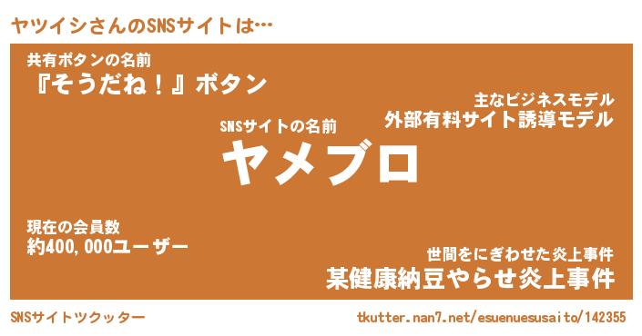 | ファンタジー風あだ名 | 『ヤツフェル』『エターナルヤツイシー』 |