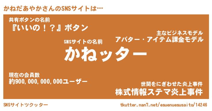 | 胡散臭い通販商品みたいなあだ名 | 『億万長者になれる水晶球…その名も「かねだあやか」』 |