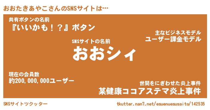 | 肩書あだ名 | 『おおたきあやこ社長令嬢』 |