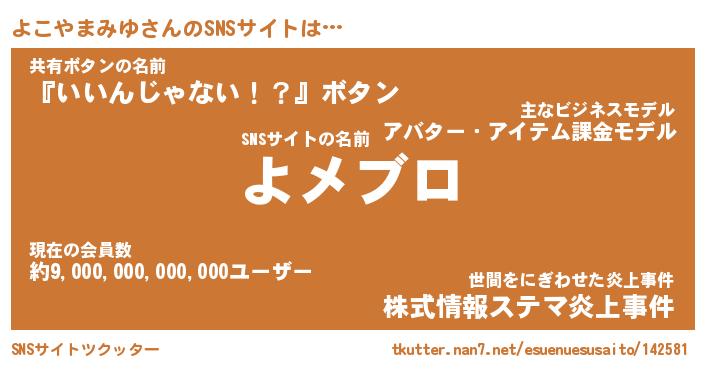 | 胡散臭い通販商品みたいなあだ名 | 『モテモテ間違いなし霊験あらたかなお札…その名も「よこやまみゆ」』 |