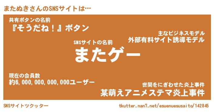 | 男性向けラノベタイトル風あだ名 | 『またぬきの憂鬱』 |