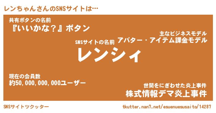 | ポケモン風あだ名 | 『レンチュウ』『レンチダネ』 |