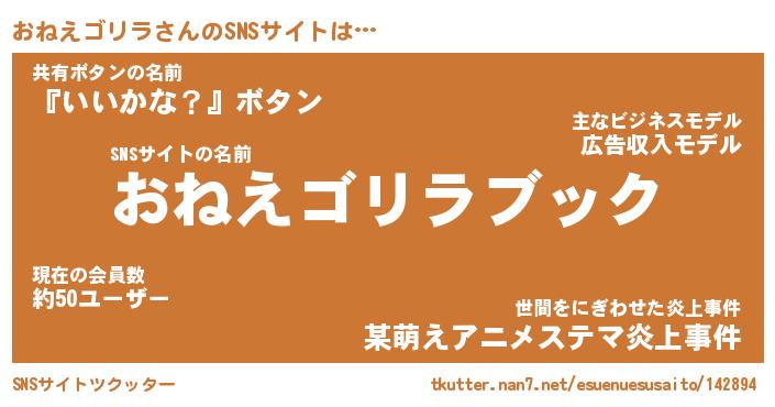 | 男性向けラノベタイトル風あだ名 | 『オネエゴリラアートオンライン』 |