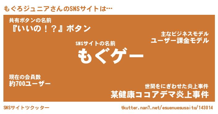 | 胡散臭い通販商品みたいなあだ名 | 『必ず成功するブレスレット…その名も「もぐろジュニア」』 |
