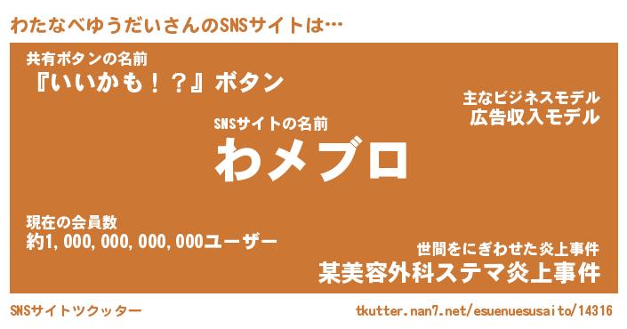 | 意味不明あだ名 | 『ペロリンわたなべゆうだい』 |