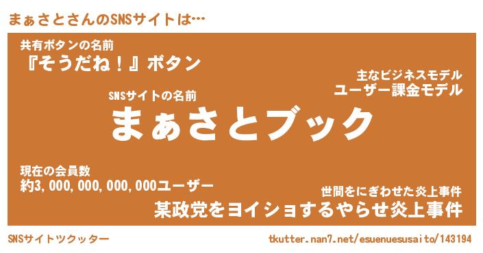 | ファンタジー風あだ名 | 『マァフェル』『エターナルマァサトー』 |