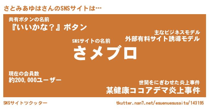 | 男性向けラノベタイトル風あだ名 | 『サトミアユハアートオンライン』 |