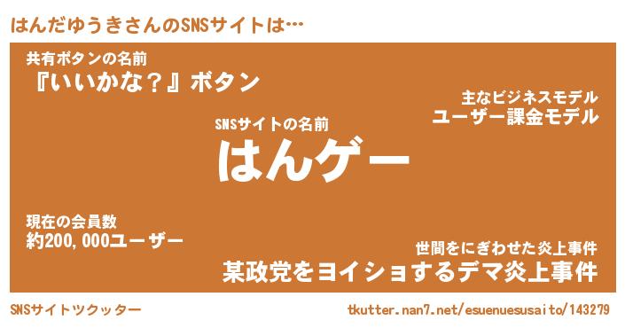 | ヘコむあだ名 | 『はんにー』『つくし』『はんを』 |