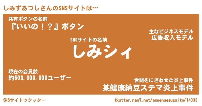 | 肩書あだ名 | 『しみずあつし社長』『しみずあつし団長』 |