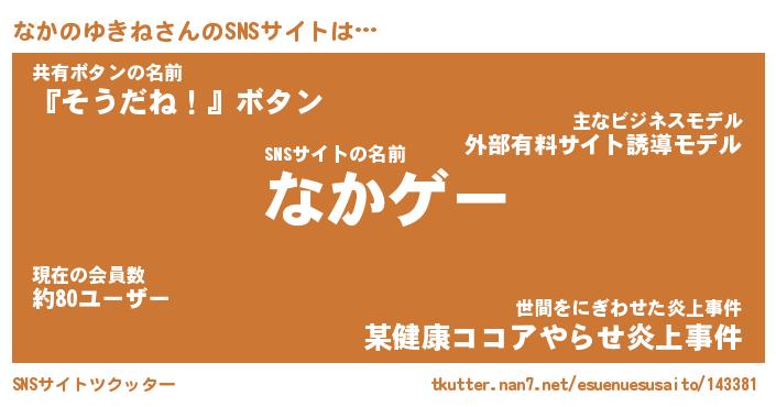 | 女子向けラノベタイトル風あだ名 | 『(仮)なかのゆきねのやんごとなき事情』 |