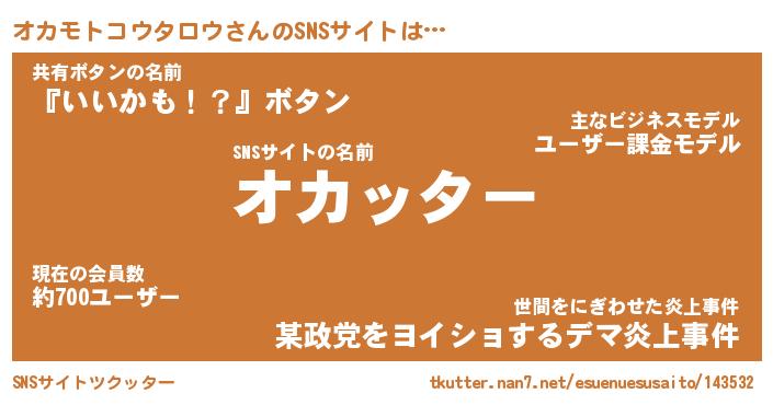 | 男性向けラノベタイトル風あだ名 | 『オカモトコウタロウアートオンライン』 |