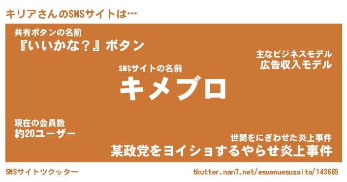 | ヘコむあだ名 | 『キリにゅー』『なまこ酢』 |