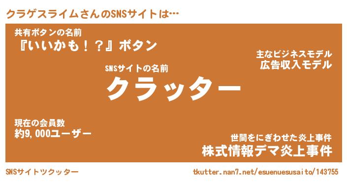 | 肩書あだ名 | 『クラゲスライム社長』 |