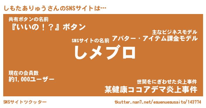 | 肩書あだ名 | 『しもたありゅう社長』 |