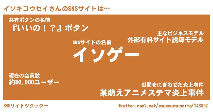| 肩書あだ名 | 『イソキコウセイ社長』 |