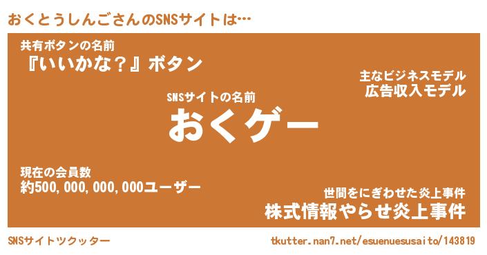 | 男性向けラノベタイトル風あだ名 | 『おくとうしんごの憂鬱』 |